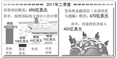 2011年二季度,我国国际收支经常项目、资本和金融项目(含净误差与遗漏)呈现“双顺差”,国际储备资产继续增长。