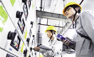 8月15日,深圳宝安区体育场专用配电室内,广东电网公司员工在认真监控电网运行状况,确保大运会赛场供电安全。在深圳大运会期间,广东电网公司制订了一系列保电方案,努力实现保大运会供电的无缝对接。