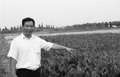 当日下午,记者又来到陆渡镇洙桥村中国水生植物(太仓)扩繁基地,负责基地工作的太仓陆渡镇水利站站长吴健明已在栽满了水生植物的路边等候了。上午刚下过一场大雨,田野上的空气清新,踩着泥泞的土地,吴站长带着我们去看他们种植的一片片水生植物。