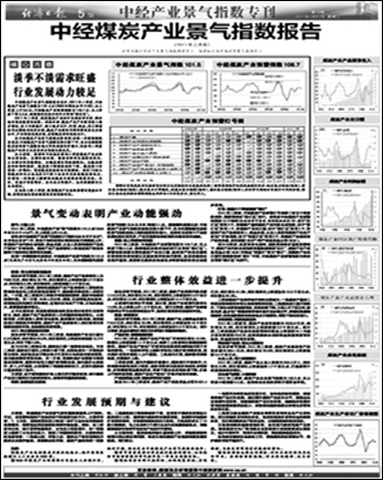 7月19日至7月29日,经济日报刊发了2011年二季度“中经产业景气指数”,监测范围首次由8个行业细分为10个行业,本次指数监测涵盖装备制造、家电、水泥、石油、有色金属、乳制品、钢铁、煤炭、服装和化工等行业。同时,还刊发了对相关行业的延伸报道。一些读者来信发表感想。