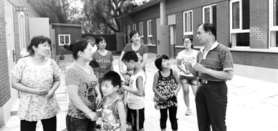 8月21日,北京市朝阳区东风乡的安民学校辛庄校区,工作人员为来京务工的学生家长介绍学校情况。
