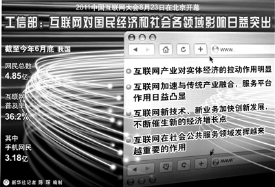 中国互联网信息中心报告显示,截至今年6月底,我国互联网网民数达到4.85亿,普及率达到36.2%。互联网的高速发展,一方面来自基础建设的不断完善,从“城市光网”到3G普及再到“三网融合”试点城市相关业务的不断推进,正在使互联网产业成为经济社会运行的重要基础设施和影响巨大的新兴媒体。另一方面,互联网的商业模式不断成熟,商业机会更加多元,在充分的市场竞争中,互联网企业也在推动经济社会发展、丰富人民群众精神文化生活、促进社会和谐等方面发挥了积极作用。