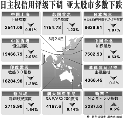 评级机构穆迪投资者服务公司8月24日宣布,将日本国债评级从原来的Aa2(第三级)下调一级至Aa3(第四级),日本成为发达国家中等级最低的国家。这是穆迪公司继2002年5月后,时隔9年再次下调日本主权信用评级。穆迪公司下调日本长期债务的主要原因是,认为在过去5年里日本频繁更换首相,妨碍了政策执行的一贯性。而日本的财政运营状况,在“3·11”东日本大地震后,日本的经济复苏迟缓和政局不稳将导致日本财政赤字削减困难。穆迪还指出,日本经济前景暗淡,导致社保税制整体改革难上加难。与此相配合,穆迪日本公司也下调了日本几家大银行评定等级,穆迪日本公司表示,鉴于日本主权信用评级已被下调,决定把日本三菱东京日联银行、三井住友银行、瑞穗银行、瑞穗实业银行的评级均下调一级。