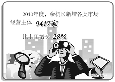 “金融套餐”的推出大大缓解了中小企业融资难题。统计显示,2010年度,余杭区新增各类市场经营主体9417家,比上年增长28%,其中新增私营企业2665家,比上年增长52.4%。