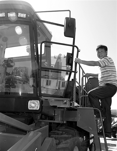 在农机市场,内蒙古自治区科尔沁区大林镇马家村的刘凤先高兴地登上了新购买的大型玉米收获机。他今年新购买了价值31万多元的大型自走式玉米收获机,享受国家政策补贴8.3万元。