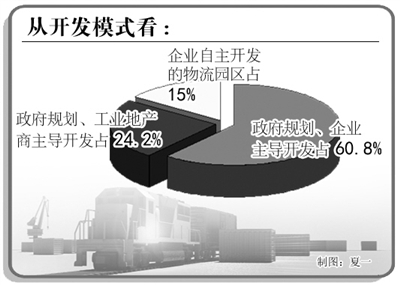 从开发模式看,政府规划、企业主导开发占60.8%,政府规划、工业地产商主导开发的物流园区占24.2%,企业自主开发的物流园区占15%。