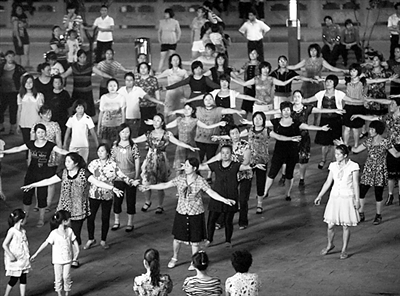 居民在山西省平顺县城彩凤公园前伴着音乐起舞——在LED灯带、霓虹灯和泛光灯的照耀下,平顺就像镶嵌在太行山中的夜明珠。 新华社记者 李晓果摄