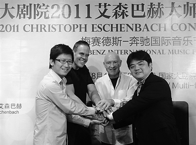 自去年率伦敦爱乐乐团来华演出后,指挥大师艾森巴赫(右二)日前再度来华并在京推出“艾森巴赫大师系列音乐会”。 罗晓光摄