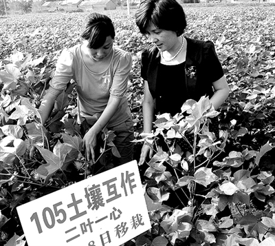 葛萍(左一)大学毕业后,回到家乡河南新蔡创办了兴棉棉业有限公司和兴农富民棉花专业合作社,采取工厂化育苗和合同订单种植的发展模式,在全县推广种植国抗杂二号棉花3万多亩。 本报记者 王 伟 通讯员 赵学风摄影报道