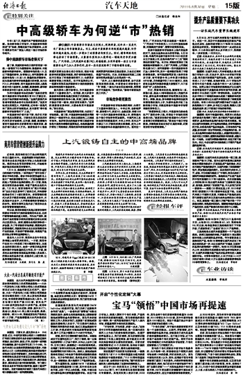 宝马的个性化定制在中国市场不是最早的,也不是唯一的,却能够在这个刚刚开启的市场拿到10%的份额,并还在快速上升。宝马中国相关负责人认为,首先,这得益于宝马专属定制部门满足了车身颜色、内饰材料等局部改装的需求;同时,他们还在为中国市场进行专门的“主题化定制”——“与其他品牌的个性化定制不同,BMW的主题化定制随着中国社会文化的热点变化,这让中国消费者很容易接受。”
