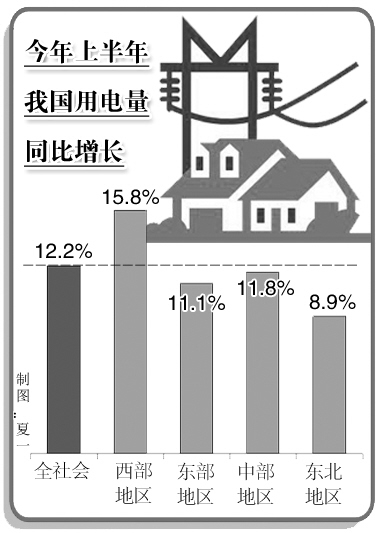 今年上半年,我国国民经济同比增长9.6%,全社会用电量同比增长12.2%。在经济增速略有回落的同时,高速增长的用电量,造成了我国2004年以来最严重的“电荒”。在此轮电力紧缺中,西部地区用电量增速明显高于东部地区,是今年电力供应中的一个特殊现象。