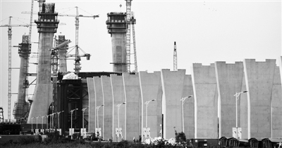 建设中的九江长江二桥(8月29日摄)。8月29日,江西九江长江二桥第一节钢梁已架设完成,主桥桥段施工全面展开。大桥预计2013年建成,通车后将成为我国东南沿海、中部和西部地区一线贯穿的省级大通道。 洪显智摄(新华社发)