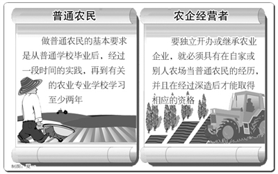 德国特别重视对“农业工人”的培训。之所以将农民称之为“农业工人”,是因为在德国从事农业生产的人已经不再是简单的农民,而是“经过培训的专门从事农业生产活动的人才”。德国法律规定,做普通农民的基本要求是从普通学校毕业后,经过一段时间的实践,再到有关的农业专业学校学习至少两年。而要独立开办或继承农业企业,则必须具有在自家或别人农场当普通农民的经历,并且在经过深造后才能取得相应的资格。即使是一个有长时间务农经历、拥有大量实践经验的农民,也需要经过两年的学习,通过国家相关的考试后,才能获得独立经营农业企业的资格。