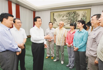 胡锦涛指出,郭明义同志长期以来自觉学习、实践雷锋精神,坚持爱岗敬业、助人为乐。他不愧是新时期的道德楷模,我们都应向他学习。总书记希望辽宁人民艺术剧院的同志们牢记文艺为人民服务、为社会主义服务的神圣职责,努力创作更多优秀文艺作品,为繁荣发展社会主义先进文化作出更大贡献。