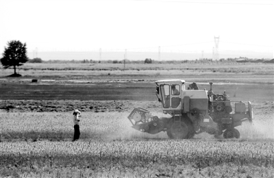 9月2日,内蒙古赤峰市松山区上官地镇农民在麦田内收割。入秋以来,内蒙古自治区各地秋收全面展开,2011年内蒙古农作物总播种面积稳定在1亿亩以上,其中粮食作物播种面积超过8388万亩。 新华社记者 张 领摄