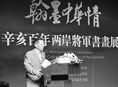 | 由中国延安精神研究会主办的“翰墨中华情——辛亥百年海峡两岸百名将军书画展”近日在北京开幕。