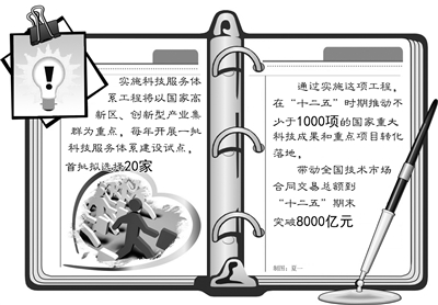 ——推动不少于1000项的国家重大科技成果和重点项目转化落地,带动全国技术市场合同交易总额到“十二五”期末突破8000亿元;