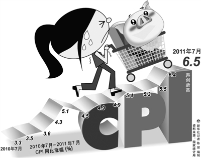在分析CPI变化情况时,一定要区分“翘尾因素”和新涨价因素。如今年7月份CPI同比上涨6.5%,其中,翘尾因素影响约为3.3个百分点,今年新涨价因素约为3.2个百分点。