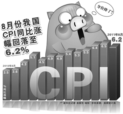 国家统计局9日发布的数据显示,8月份我国CPI同比涨幅出现小幅回落,同比上涨6.2%,涨幅比上月回落0.3个百分点。涨幅回落的原因是什么?后期会不会继续回落呢?