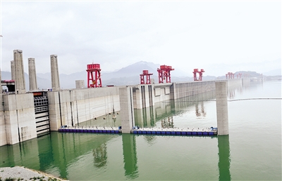 9月10日拍摄的启动175米试验性蓄水后的三峡大坝。 当日0时,三峡水利枢纽正式启动175米试验性蓄水。未来两个月左右,三峡水库水位最高涨幅将达23米,并有望于10月底或11月涨至175米标准蓄水位。 郑家裕摄 (新华社发)
