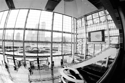 这是9月11日拍摄的“2011夏季达沃斯论坛”年会会场。9月14日至16日,世界经济论坛2011年新领军者年会(又称“2011夏季达沃斯论坛”)在辽宁大连举行。目前,年会的各项准备工作已经基本就绪。 新华社记者 李 钢摄