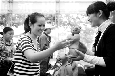 9月16日,为期两天的2011保定市首届旅游产业博览会开幕。这是消费者在博览会上选购旅游纪念品。近年来,河北省保定市大力发展旅游产业,现有旅游商品企业60余家,旅游商品5大类100多个品种。 本报记者 李景录摄