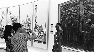 9月4日,解放军艺术学院美术系师生优秀作品展在中国美术馆举行,共展出该系200多名师生创作的333幅优秀作品。军旅生活、重大历史题材、人民群众的生产生活是这批画作的主要内容。 陈莹莹摄