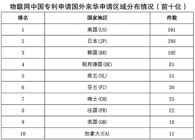 IBM、日立、飞利浦、NXP、英特尔、三星等国际巨头纷纷来到我国申请物联网相关专利。从前面的分析看到,国外来华申请目前所拥有的有效发明专利权多于国内申请近一倍。IBM从1995年开始就在我国申请RFID标签相关专利,目前在我国获得物联网发明专利权12件,实审中发明专利申请23件,既涉及物联网设备的硬件结构方面,也涉及物联网的应用方面,对物联网产业链有比较广泛的覆盖。