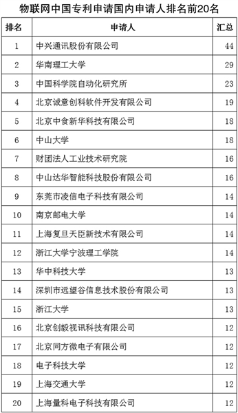 在国内申请人中我们看到了大量关于物联网技术在实际生活中应用的实例。如北京中食新华科技有限公司申请18件有关物联网专利,通过物联网技术RFID实现农产品的溯源和物流流程管理。北京诚意创科软件开发有限公司申请19件有关带有RFID标签的证件的专利。四川省宜宾五粮液集团有限公司申请了6件有关物联网的专利,其中5件实用新型已经获得授权,1件发明专利申请还处于实质审查中。发明内容都是如何应用RFID标签实现产品的防伪。通过一次性撕毁的RFID标签,来实现五粮液酒的真伪判断。