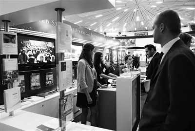 国际核工业展在国际原子能机构总部所在地维也纳国际中心举行,来自中国、美国、法国等国家的企业参展,展示核电、核医疗、核生物等技术的应用和服务。图为参观者在美国展台前参观。 新华社发