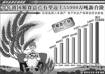在粮食产量已经实现连续七年增产的基础上,今年粮食生产继续保持稳定发展的良好势头,具有十分重要的意义,为保障市场供给、管理好通胀预期、抑制物价过快上涨奠定了重要的物质基础,为保持经济平稳较快发展、维护社会和谐稳定大局提供了有力支撑,对稳定国际粮食市场也具有重要作用。
