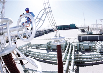 9月24日,一名工人在青海省格尔木市柴达木换流变电站检查750千伏电气设备,做投产前的最后准备。9月25日,被誉为“电力天路”的青藏交直流联网工程西宁至格尔木段750千伏交流工程投产运行,为下一步格尔木至拉萨段正负400千伏直流输变电工程的投产奠定了基础。