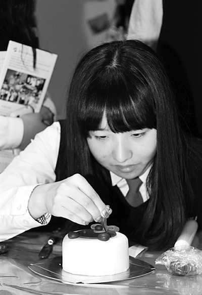 2011“未来职业博览会”在韩国首尔三成洞COEX开幕。该博览会包含了50余种职业的体验活动,吸引了众多青少年前来参观体验。图为参加博览会的青少年在“糖果装饰品师区域”学习用砂糖制作各种装饰。 新华社发