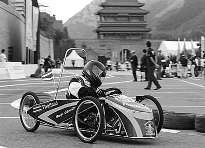 9月22日,“驱动创意—博世电动工具亚洲创意车设计大赛2011”总决赛在北京居庸关长城脚下挥旗开赛。 新华社记者 袁 满摄