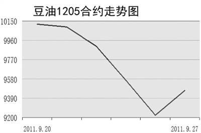 9月27日,连豆油主力1205合约报收于每吨9468元,微幅上涨。近期,由于美豆的快速杀跌,国内大豆期货市场也跟盘联动下行。中期研究院吴媛瑾认为,由于各国政府不会放任危机蔓延,欧债危机失控的可能性不大,而美豆单产上调虽然出乎市场意料,但美豆生长优良率偏低,减产基本成为定局,全球油脂供给格局并没有出现明显的变化。