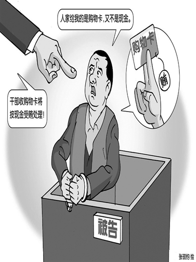 ——公务员收卡等同收现金,凡收受商业预付卡又不按规定及时上交的,以收受同等数额的现金论处。对涉嫌受贿的,依法严肃查处。