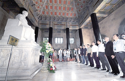 中山陵不只是旅游胜地,还是接受先贤革命精神洗礼的神圣殿堂。一个年轻人坐在台阶上歇脚,记者与他攀谈得知,他是今年刚入校的大学生,对中山陵仰慕已久。前两天刚报到,趁着还没开始上课,他迫不及待地来到中山陵瞻仰。“今年是辛亥革命100周年,在这个特殊的时间来这里,我觉得很有意义。”年轻人告诉记者。