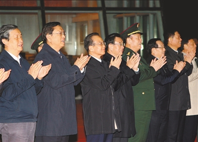 在北京航天飞行控制中心观看发射实况的领导同志还有:刘云山、刘延东、李源潮、徐才厚、令计划、梁光烈、孟建柱,以及中央军委委员陈炳德、李继耐、廖锡龙、靖志远、吴胜利等。