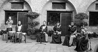 中图 皇城相府景区内的民俗表演八音会。