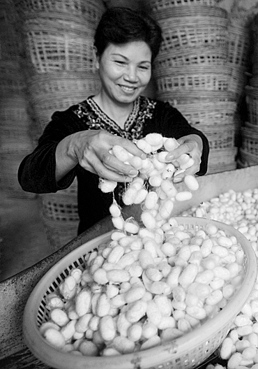 10月7日,在广西壮族自治区平果县马头镇练沙村,一名村民在分拣秋茧,准备销售。当日,该县秋季蚕茧上市开秤,收购价达每公斤35元,比去年同期高出5元,价格上涨。 罗郅肯摄 (新华社发)