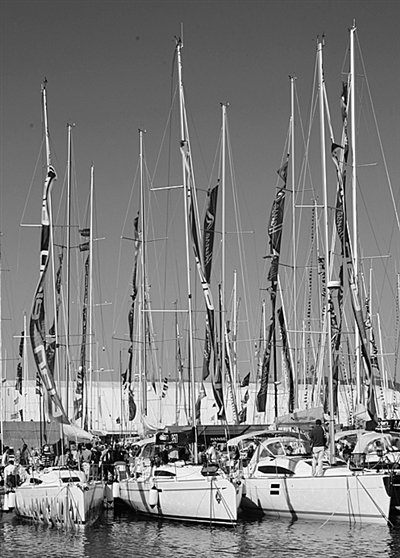 第51届热那亚国际船舶展日前在意大利海滨城市热那亚举行,1300家企业的2000余艘游艇、快艇、帆船等不同类型的船只在今年的展会上和船舶爱好者见面。每年一届的热那亚国际船舶展是全世界重要的国际船舶展之一。图为展出船只。 新华社发