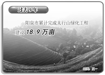 “作为传统的老工业基地,站在新的起点,如何实现经济结构的调整,推动资源型城市转型,成了阳泉市必须面对并亟待解决的问题。我们必须既要解决经济发展的不足,又要解决生态环境的不优。”阳泉市委书记白云告诉记者。阳泉市提出了实施生态立市战略和创建森林城市的目标,力争把阳泉市打造成“晋冀绿色门户、太行森林煤都”。