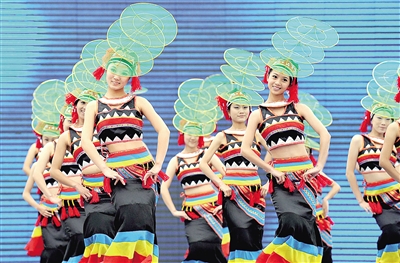 几位“花腰傣”姑娘在云南省新平县表演民族舞蹈。 从2003年起,云南省进行文化体制改革试点,探索建立了一个由政府主导、民族文化主打、旅游助推、龙头带动、文化事业产业互动的文化产业发展机制。2010年,云南省文化产业增加值达到400多亿元。 新华社记者 蔺以光摄