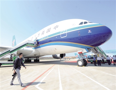 10月17日,南航空客A380在首航接机仪式现场。