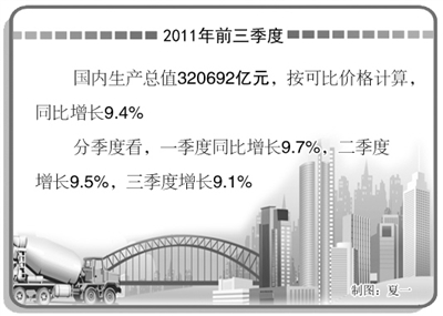 前三季度,国内生产总值同比分别增长9.7%、9.5%、9.1%,连续三个季度稳定在9%以上,持续处于平稳较快增长区间。综合考虑生产要素支撑能力的变化以及“十二五”规划确定的经济发展目标等,特别是与世界各国发展对比来看,这一增速是符合我国宏观调控预期的。