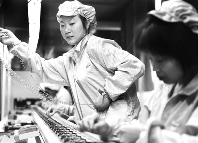 10月18日,江苏省兴化市老圩乡乐晶电子科技有限公司员工正在组装电路板配件。该公司与南京大学等高校及科研院所合作,自主研发各类电子产品出口创汇。 本报记者 李景录摄