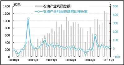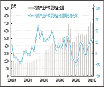2011年三季度石油产业应收账款为1128.1亿元,同比增速由上季度的下降1%转为本季度的上升10.5%。