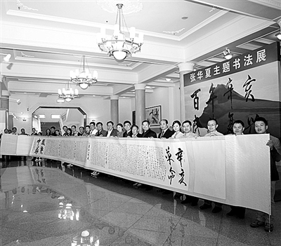 图1:为期3天的“百年辛亥 民族复兴——张华夏主题书法展”近日在全国政协礼堂开展,共展出作品160多幅。