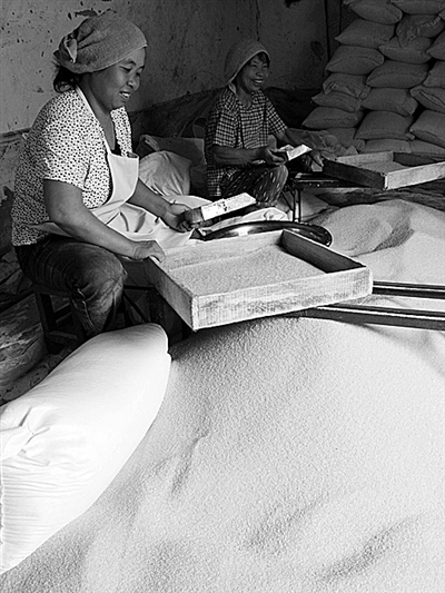 第二车间,加工苛刻。为保证产品质量和安全,从下杆到运到车间加工必须在5小时之内,否则就会跑桨,影响口感。