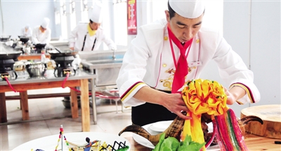 10月25日,选手在参加中式烹饪师项目比赛。当日,“四川省第四届农民工技能大赛”在南充市西充县四川省张澜职业技术学校开幕。此次大赛共吸引来自全省21个市(州)的136名农民工参赛比拼才艺。 李向雨摄(新华社发)